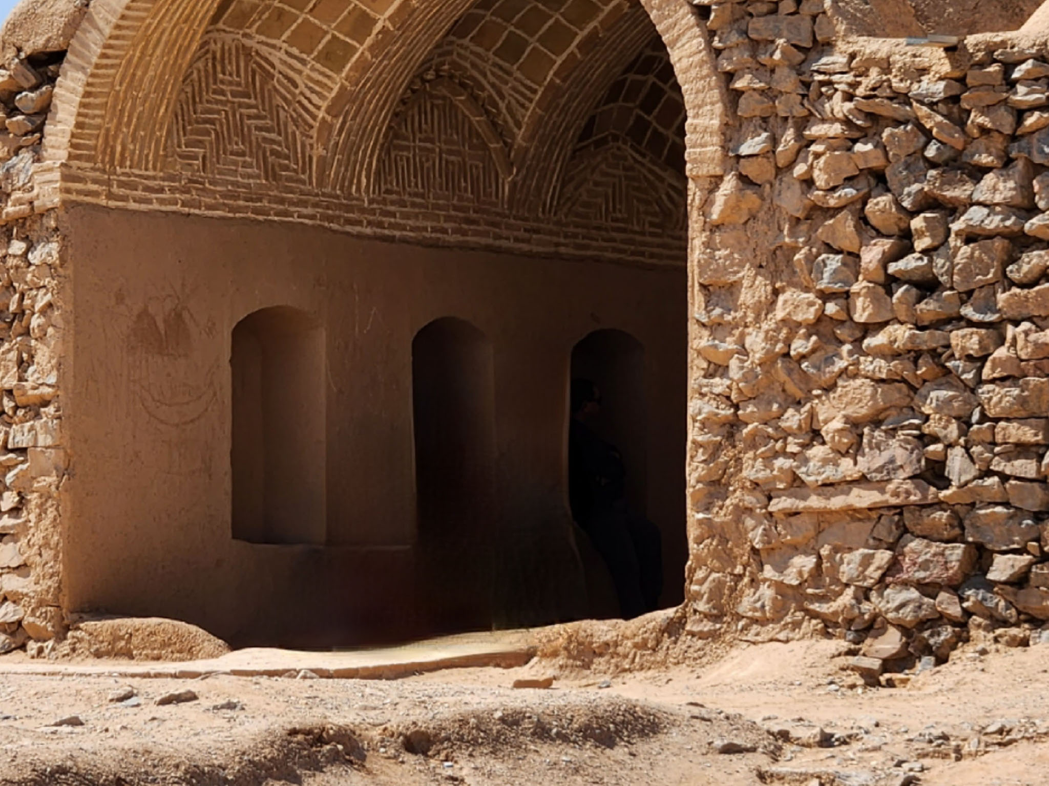 We descended to the chamber kept cool by the windcatcher system. Pretty steep stairway, a good way to keep up the muscle tone in the whole body.