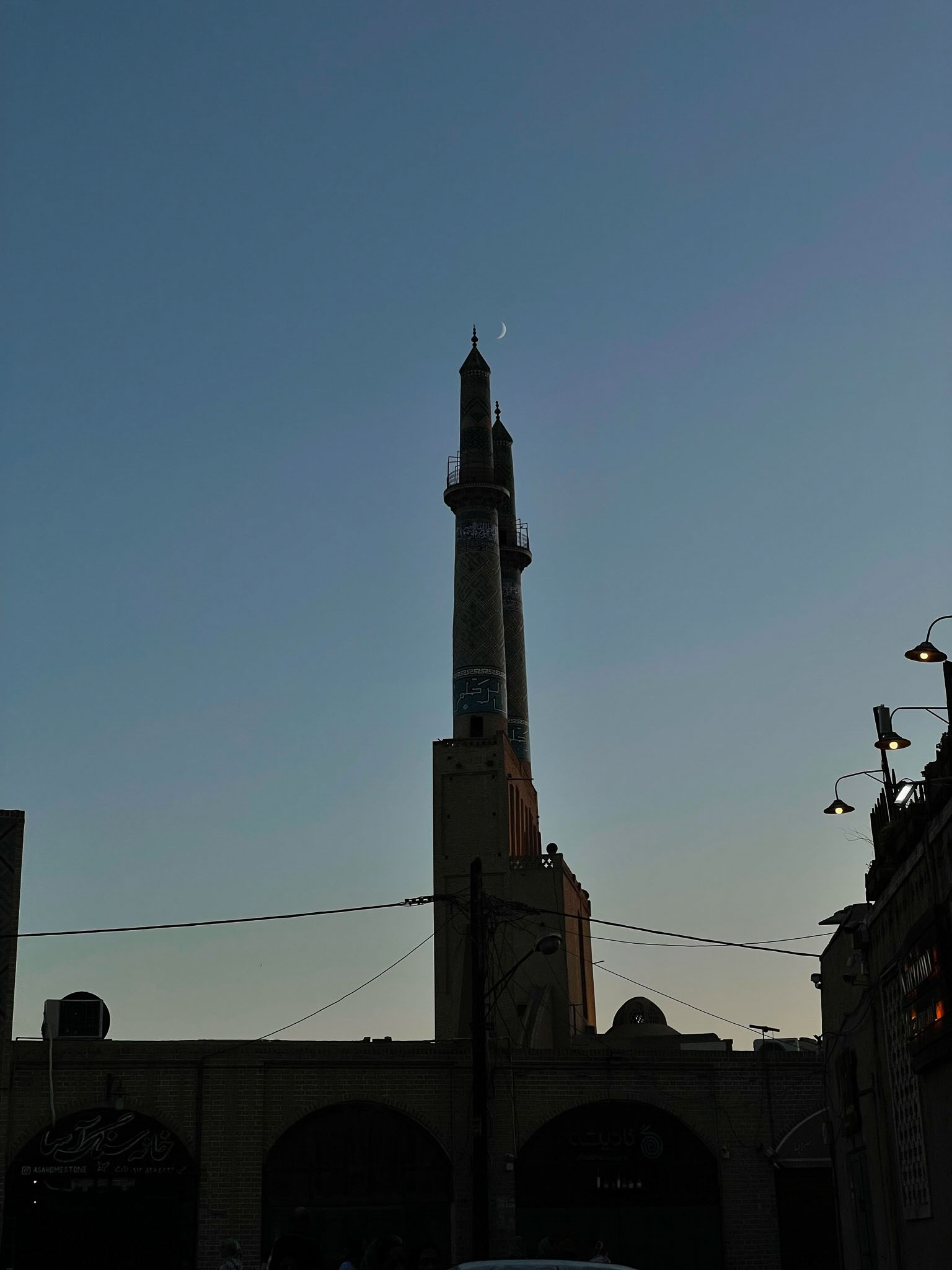 Ane the crescent moon highlighting the beauty of Yazd.