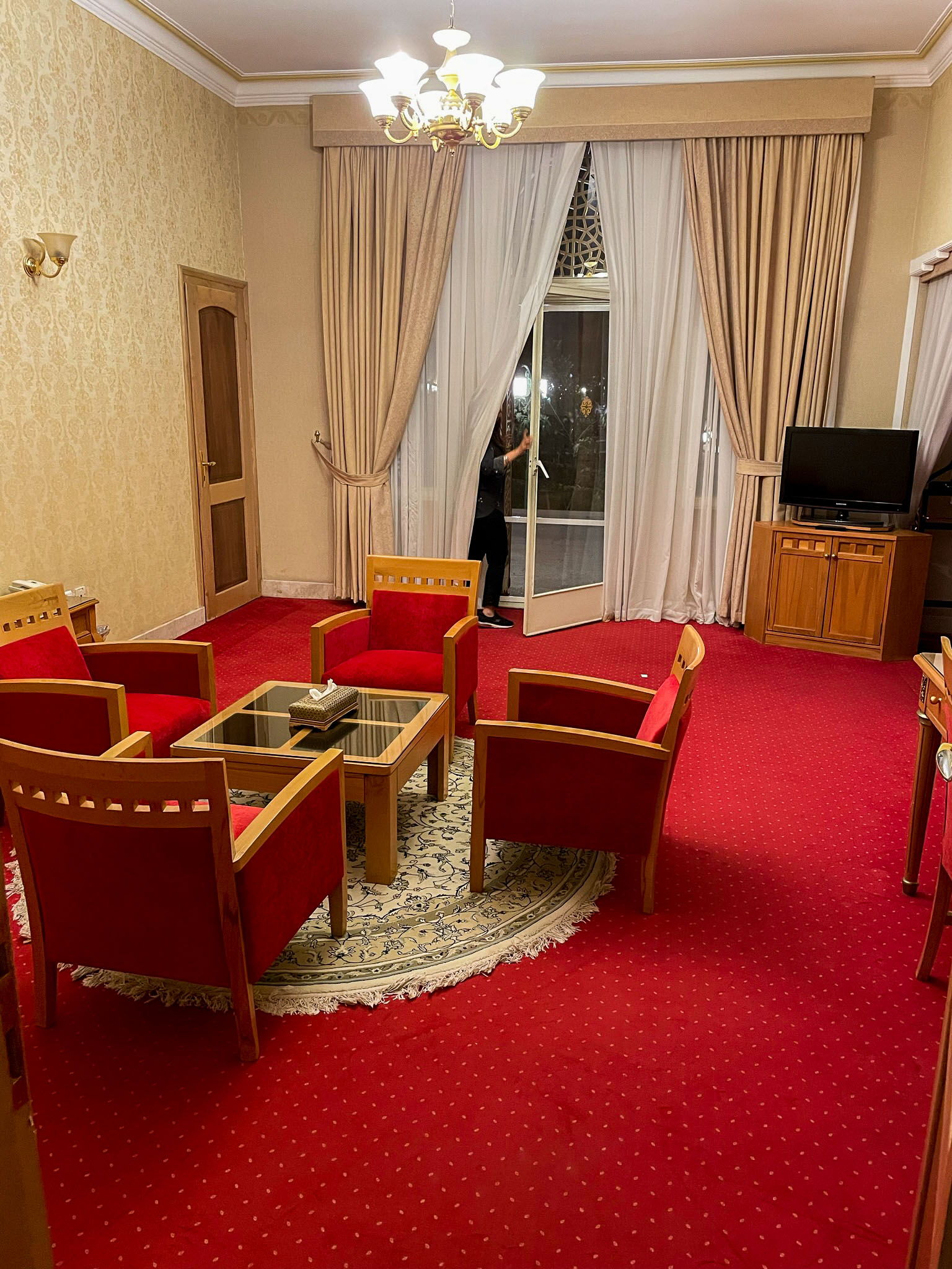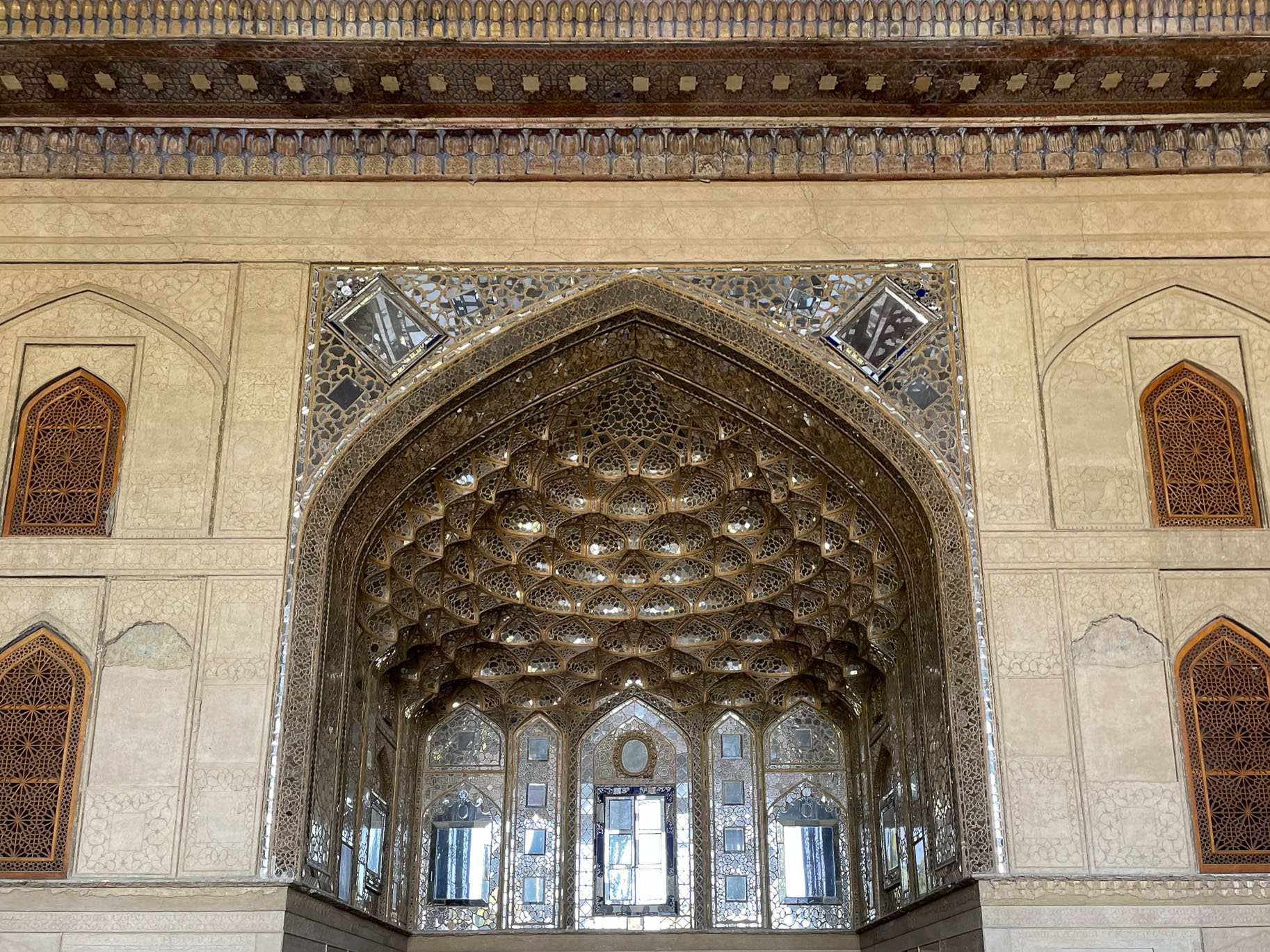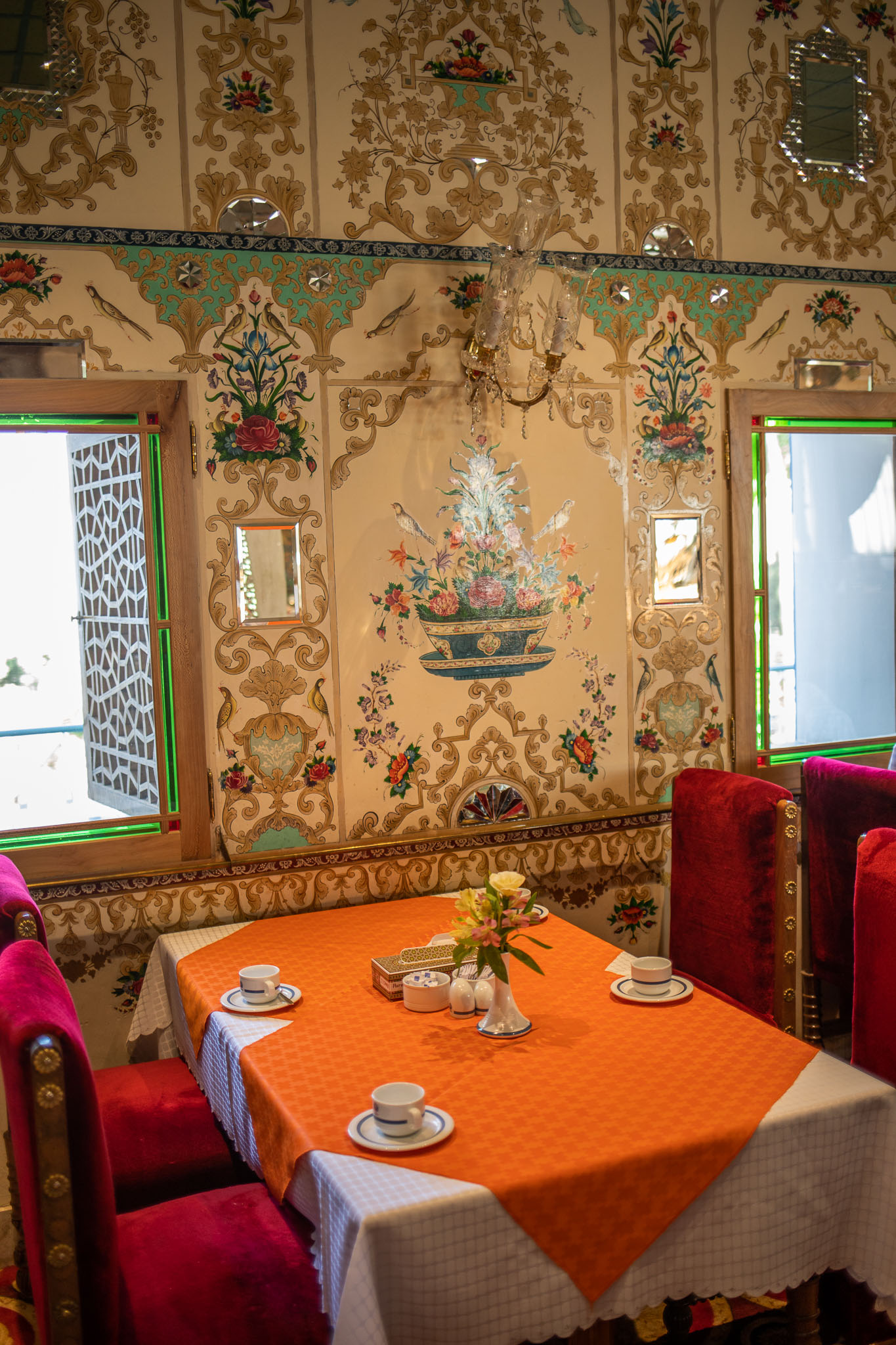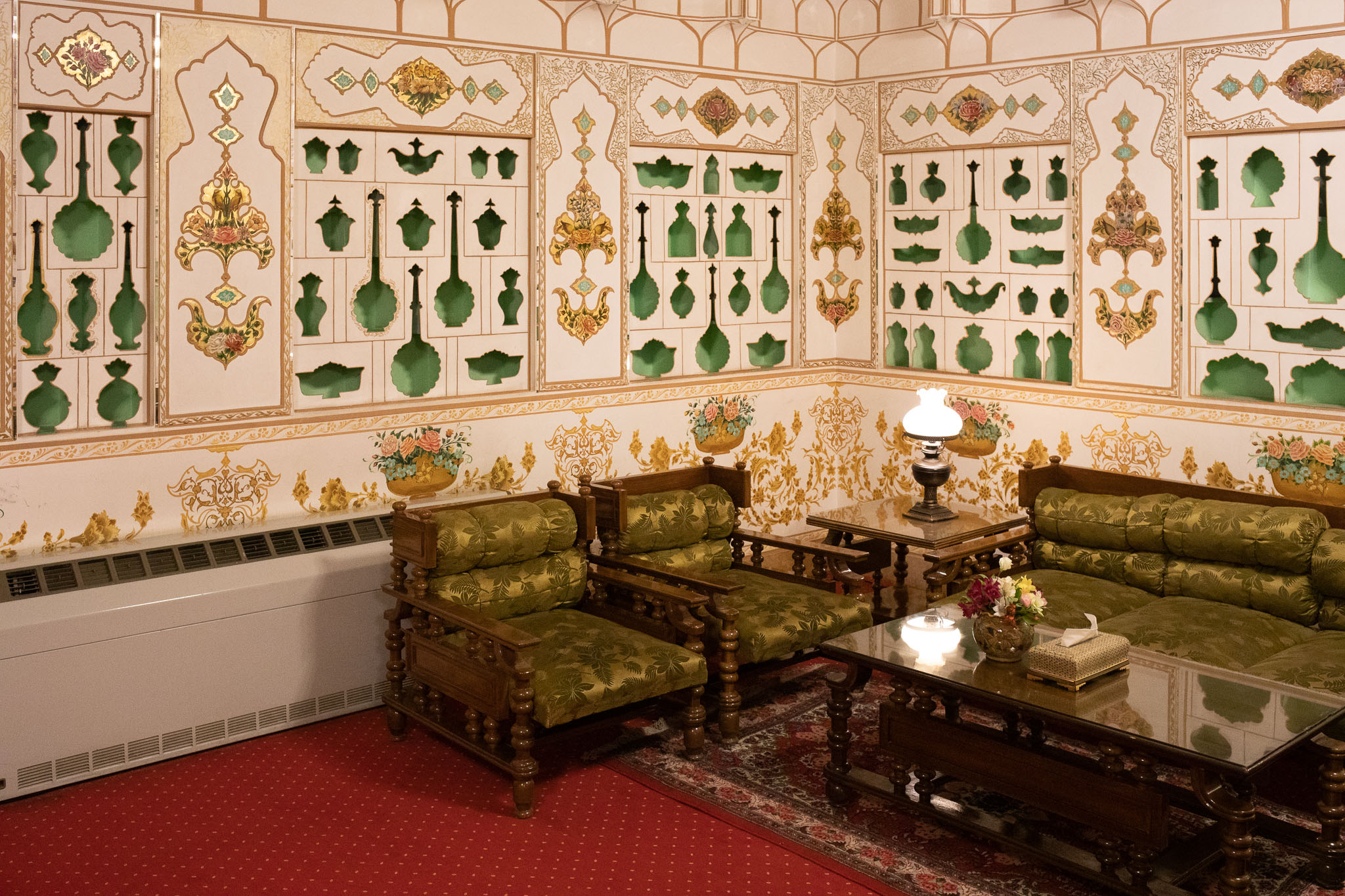 Azra and I were lucky in the roll of the dice. Our room is fit for royalty, a sitting room and bedroom decorated with beauty and taste, opening to the Chahar-Bagh.