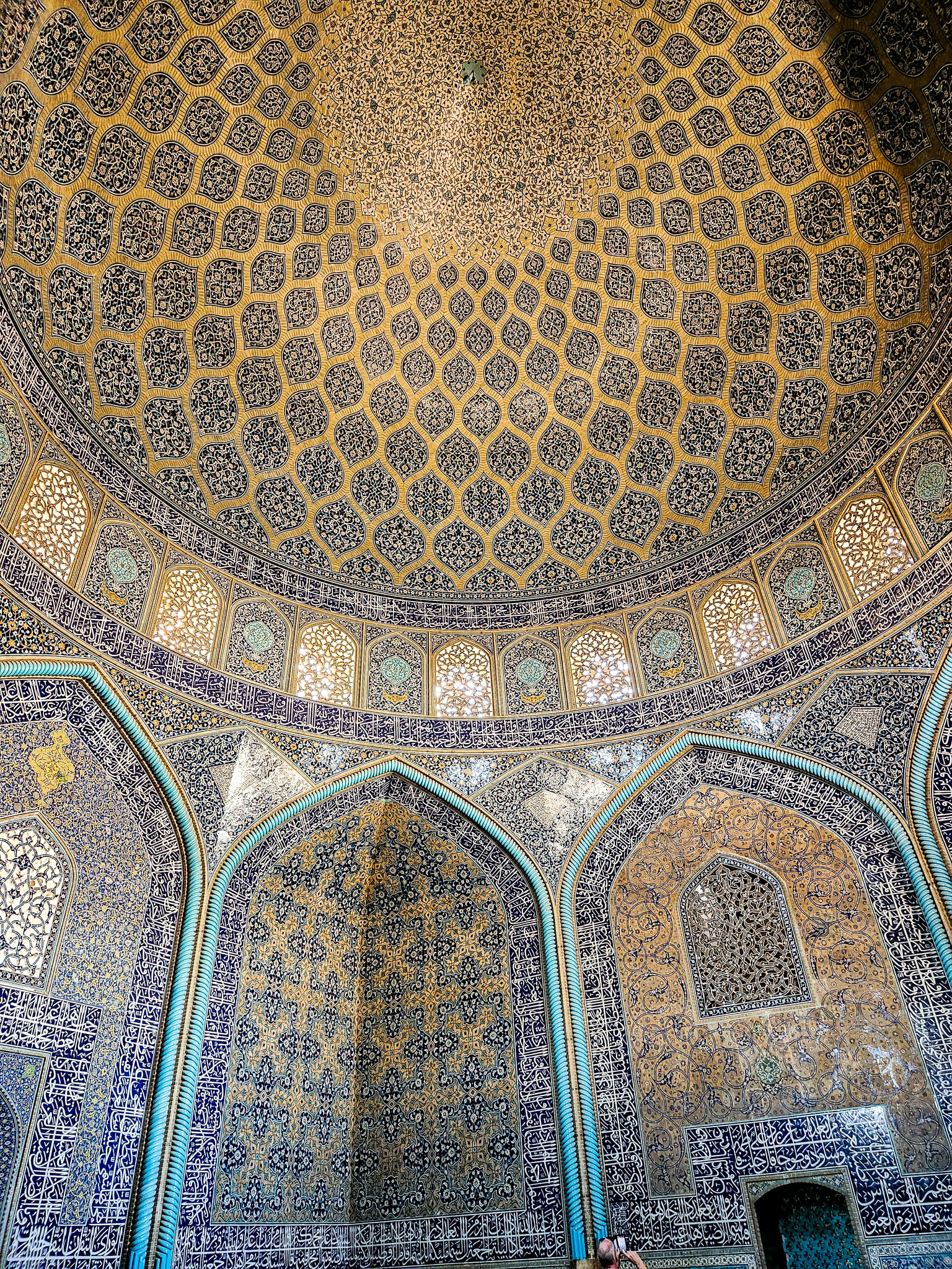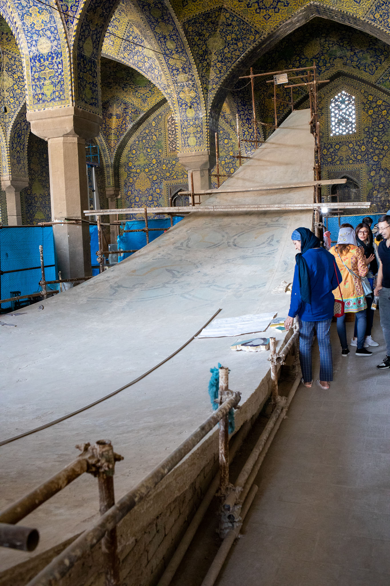 A tour through an area used for renovation of the dome of the masjed. We'll see how perfectly curved porcelain tiles are crafted to fit the complex surface of the dome.