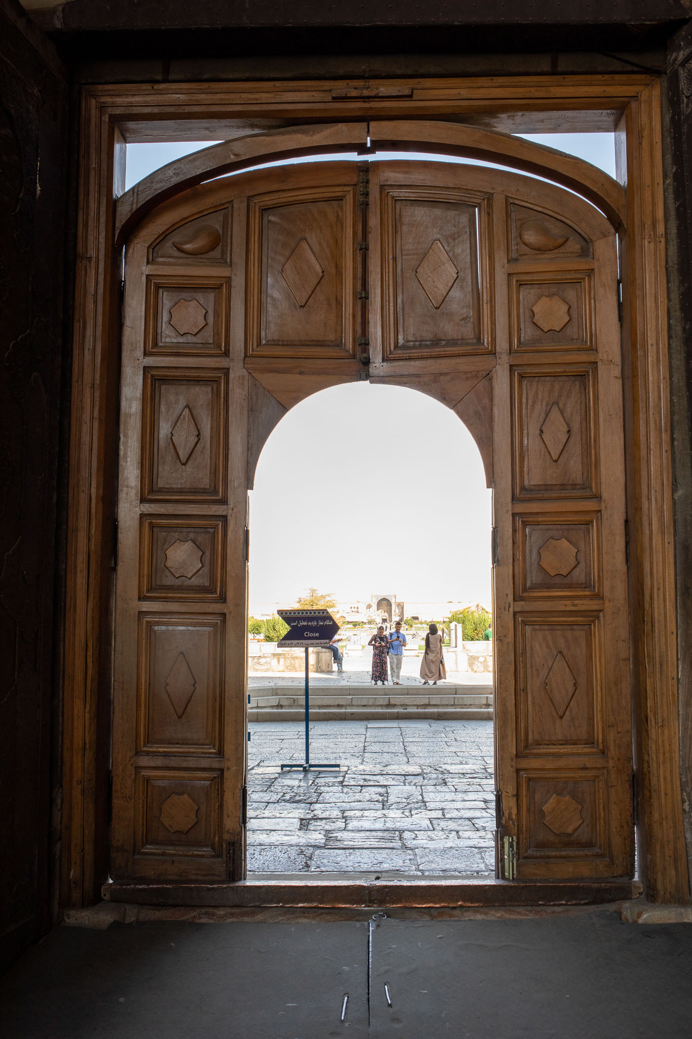 Exiting Masjed-e-Shah we pass through a huge, ornately carved gate.