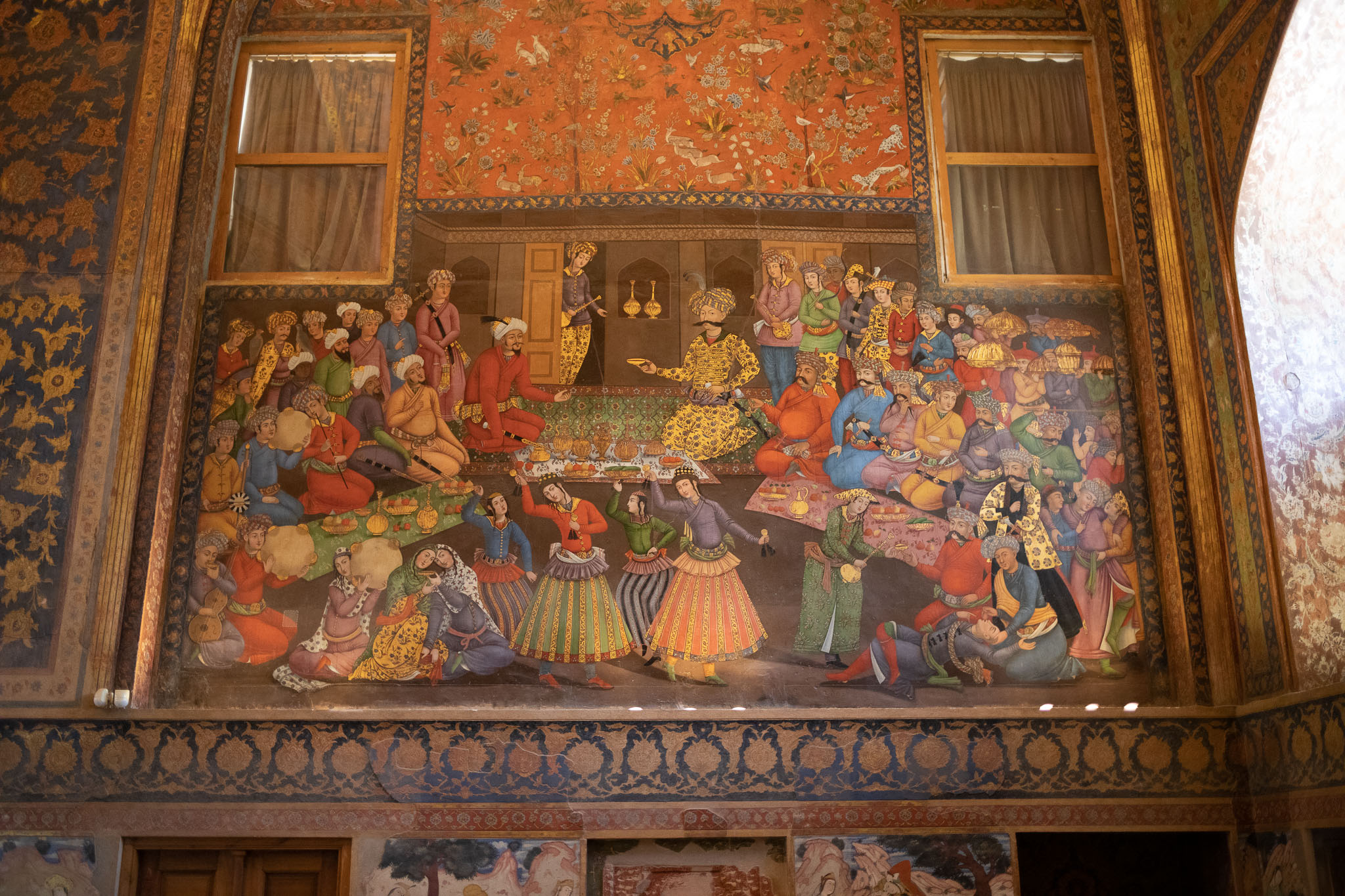 And soon after Isfahan square, the Chehel Sutoon Palace, this drawing showing how it looked originally. Images of the grandeur of Persepolis are evident here, though we won't realize it until much later in the tour.