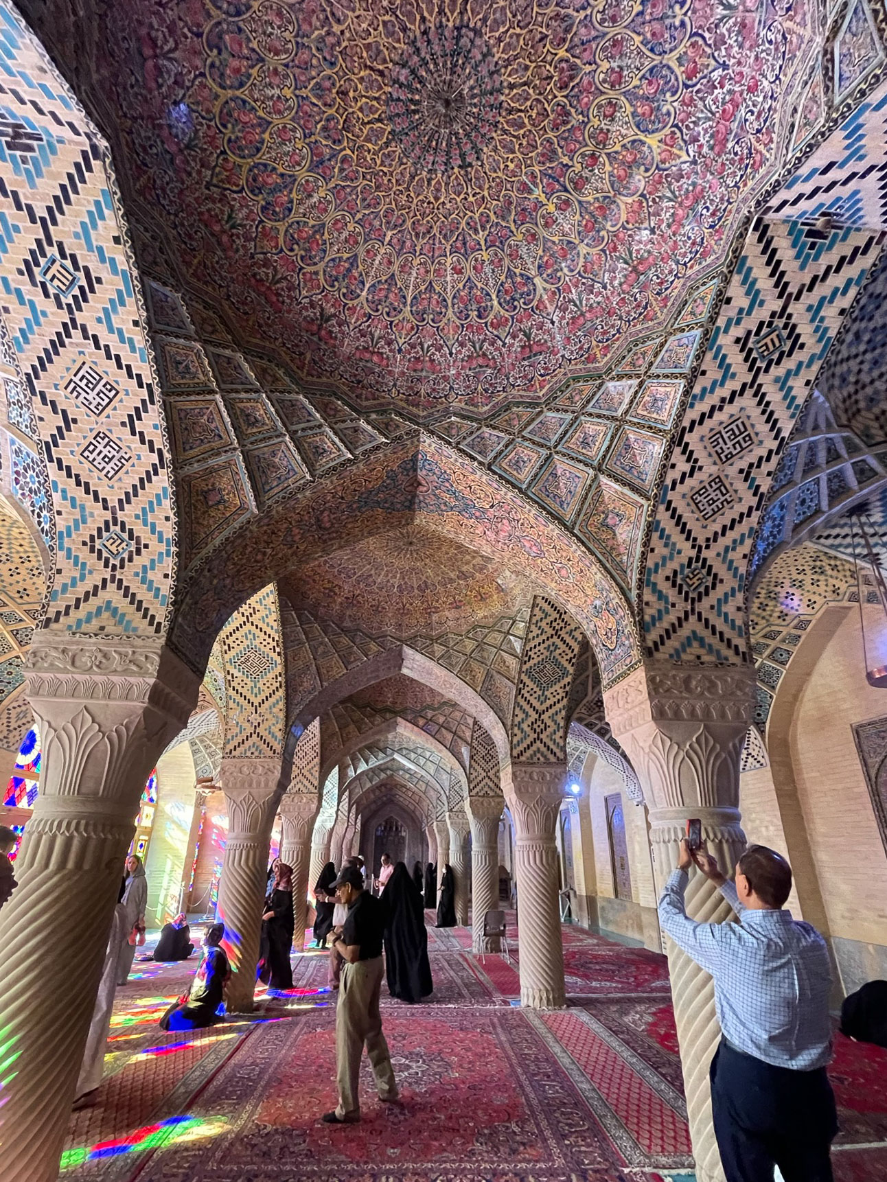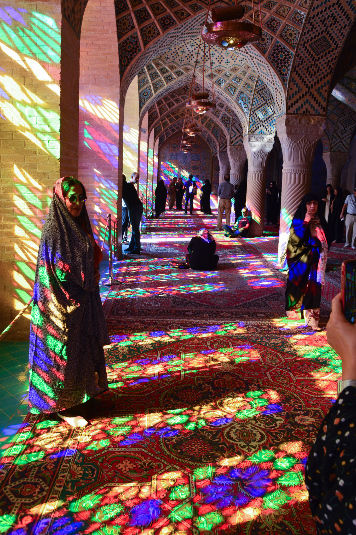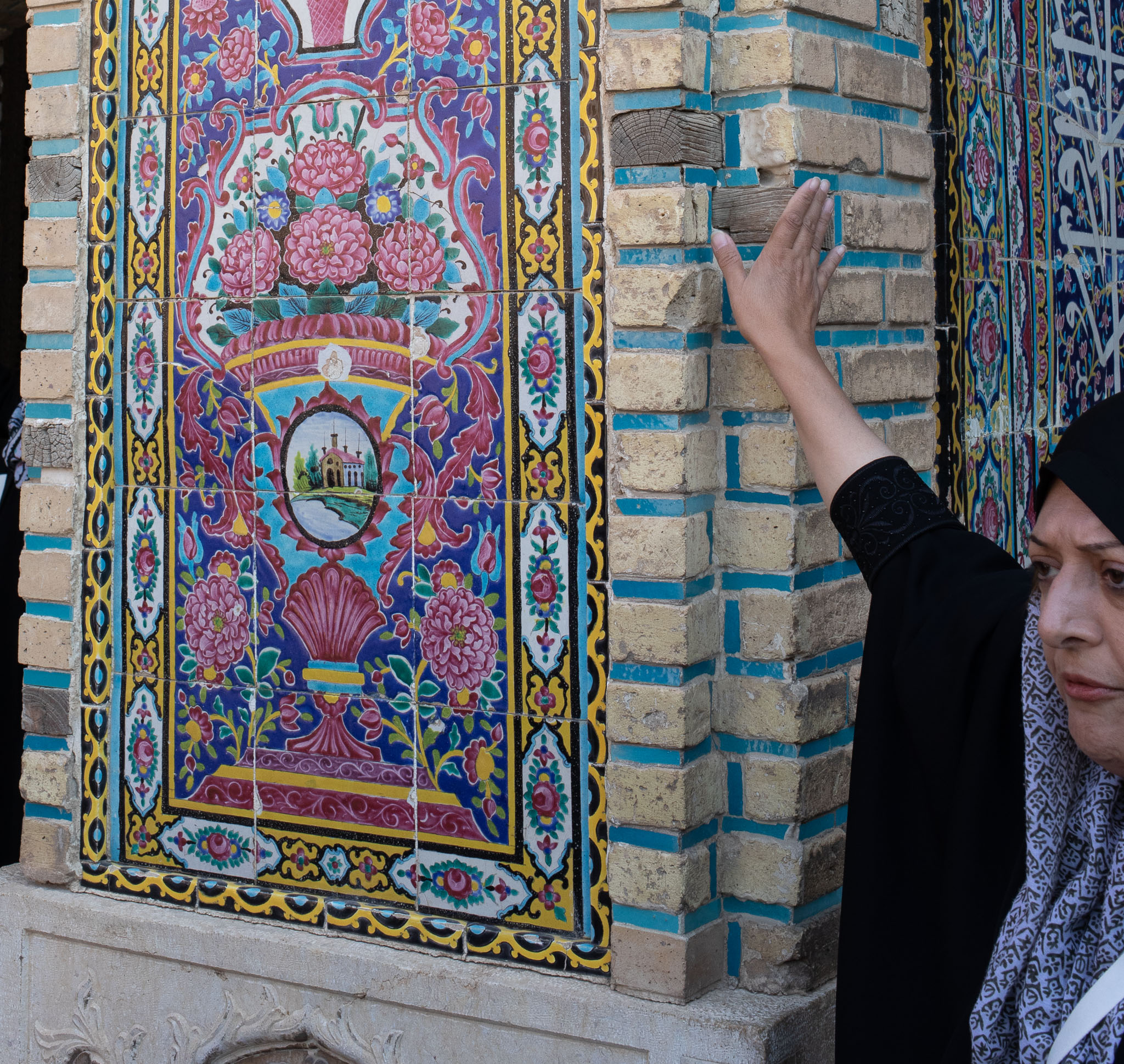 Sabideh explaing the significance of the unique colors used in this mosque which is why it is called the "Pink Mosque" Built in the Qajar dynasty but