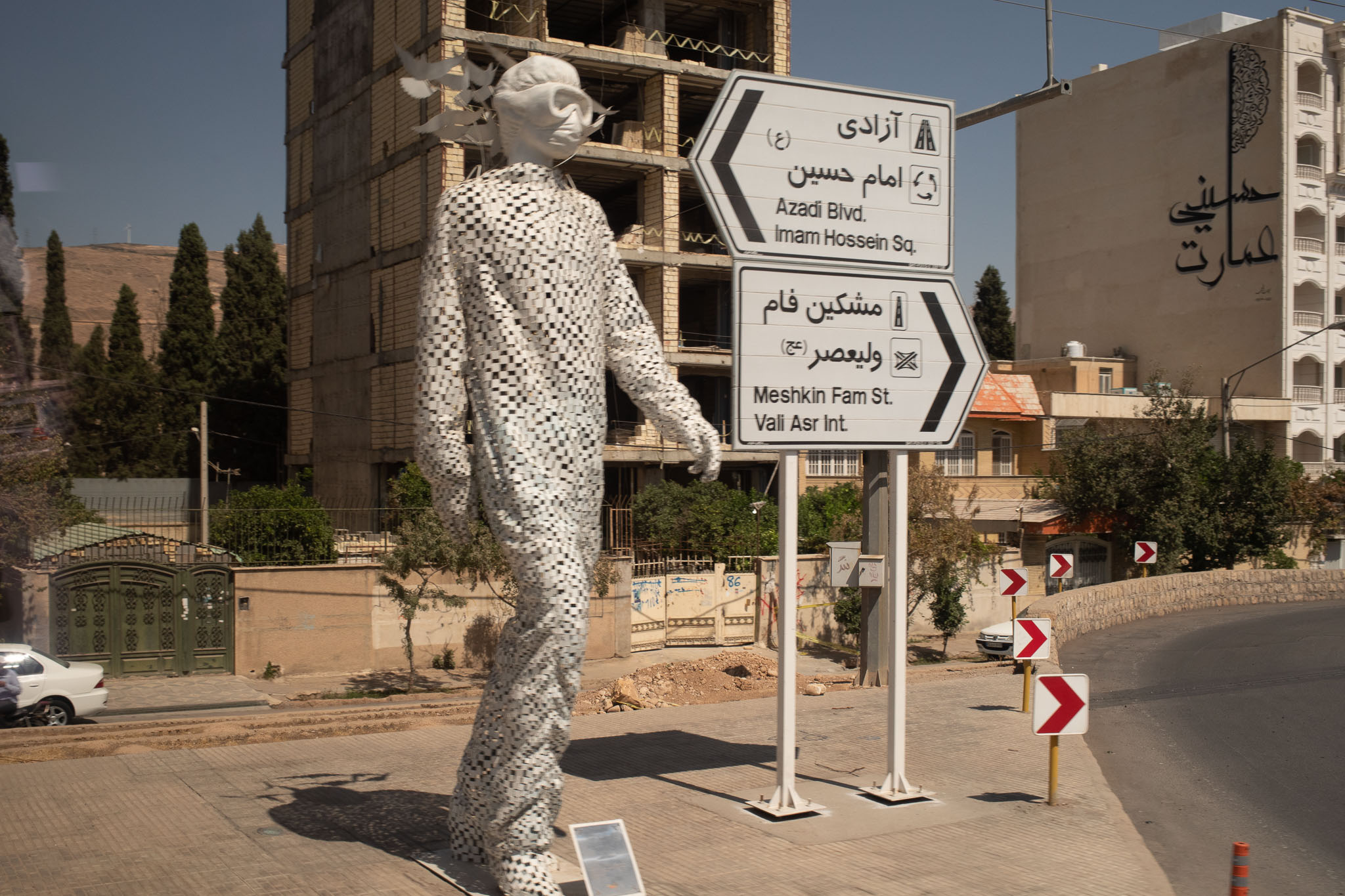 A panoramic tour of the city. The Valiasr Cable Bridge for the modern motorway going through Shiraz.