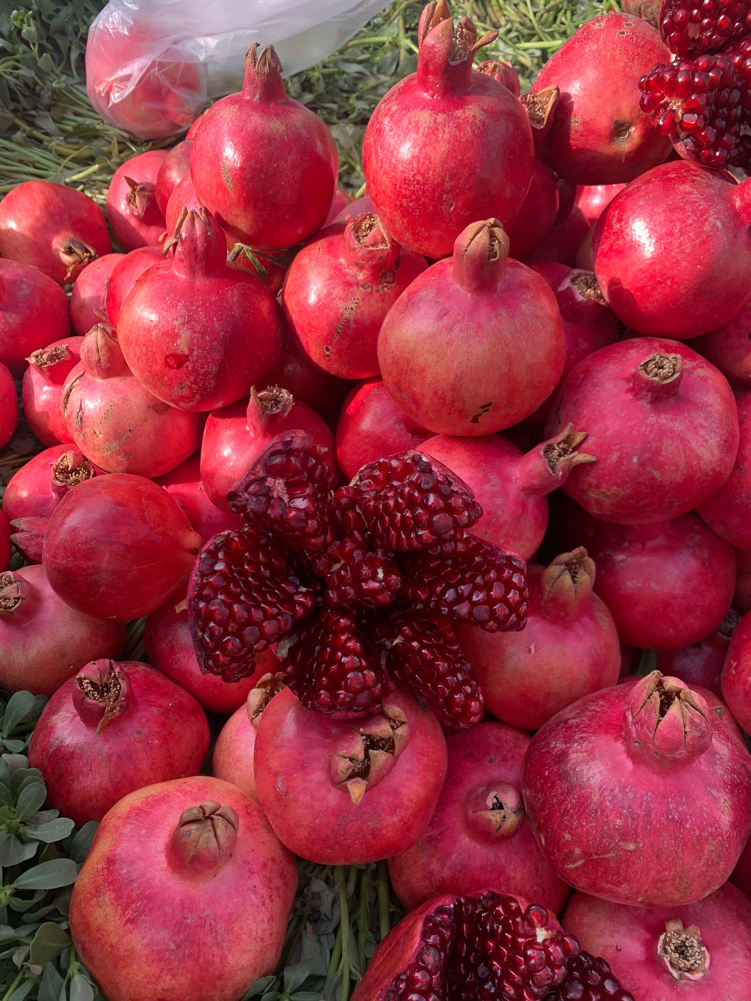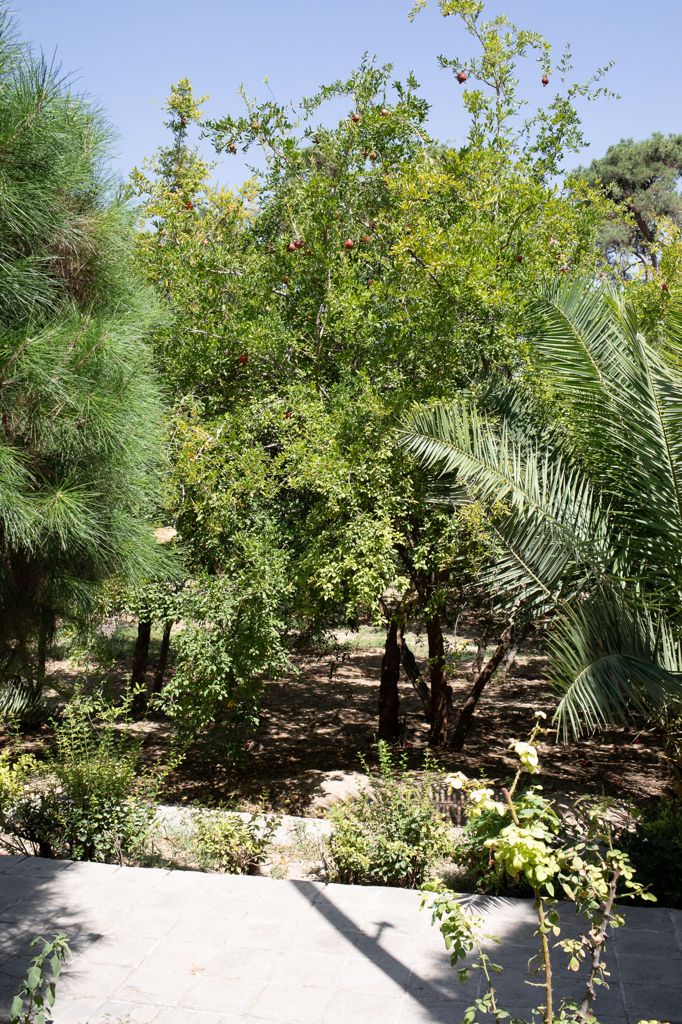 the garden is full of pomegranate trees. Pomegranates are commercially harvested here.